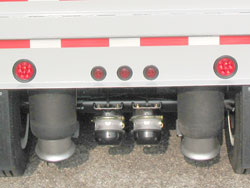 The Air Ride Suspension has a flexible air cushion pressurized by the tractor's air system and regulated by a leveling valve. The Air Ride Suspension is a popular choice for multi-axle gooseneck trailers. Air Ride Suspension provides a smoother ride and can be positioned for different axle spacing (i.e. 50", 54", 60"). When combined with a